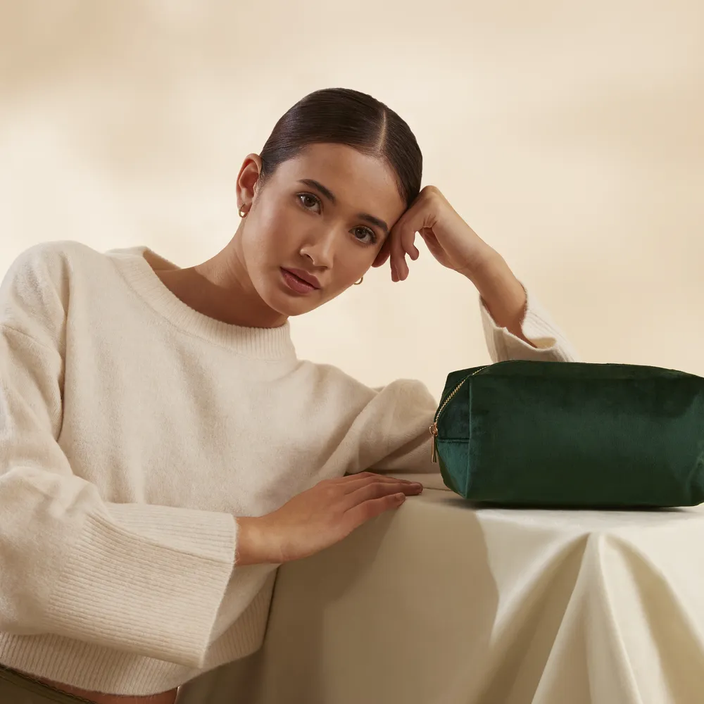 Ekologiczna kosmetyczka / etui na akcesoria z aksamitu z recyklingu z certyfikatem GRS.