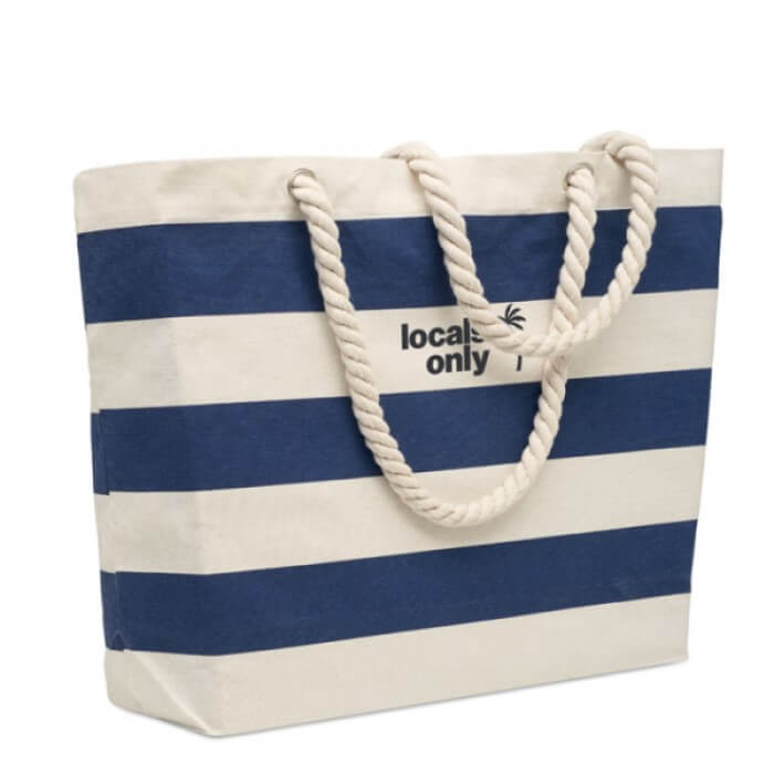 Ekologiczna duża, pojemna bawełniana torba w paski.