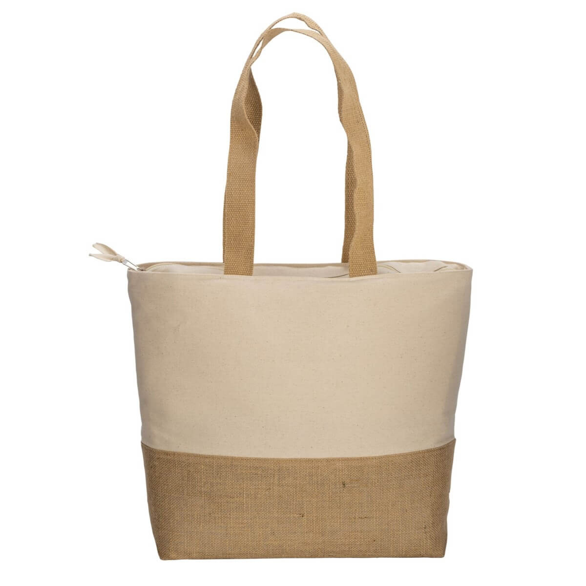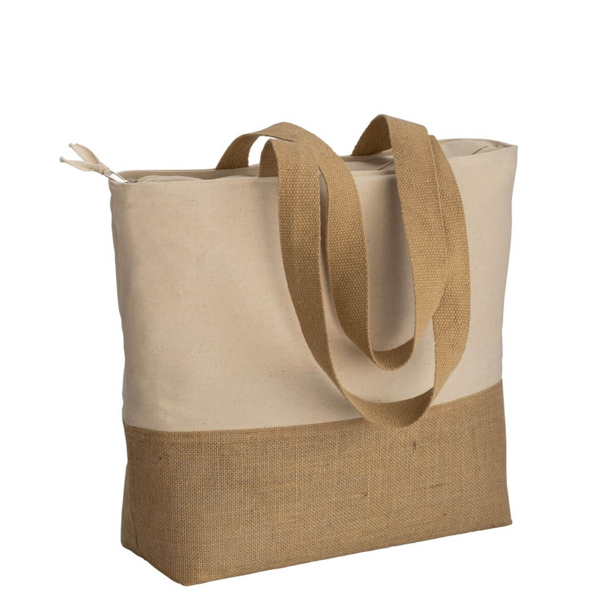 Ekologiczna płócienna torba z jutowym dnem na zakupy lub plażę.
