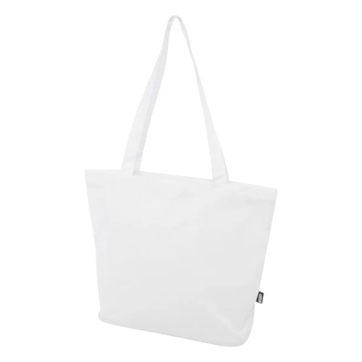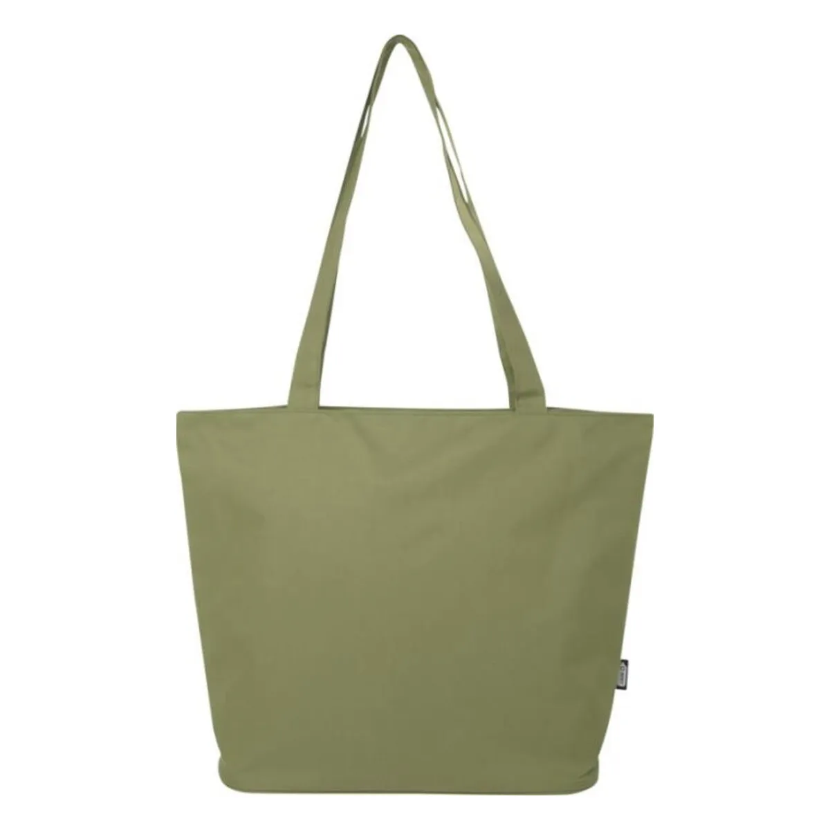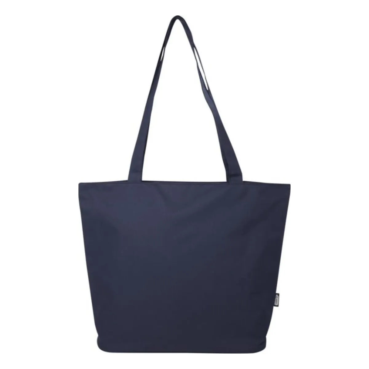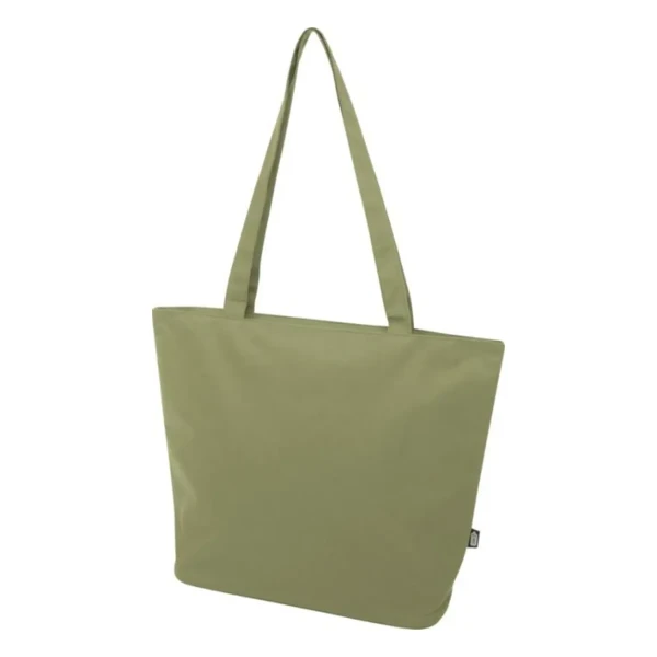 Torba na zakupy zapinana na zamek błyskawiczny z wodoodpornego materiału RPET 600D z recyklingu z certyfikatem GRS.