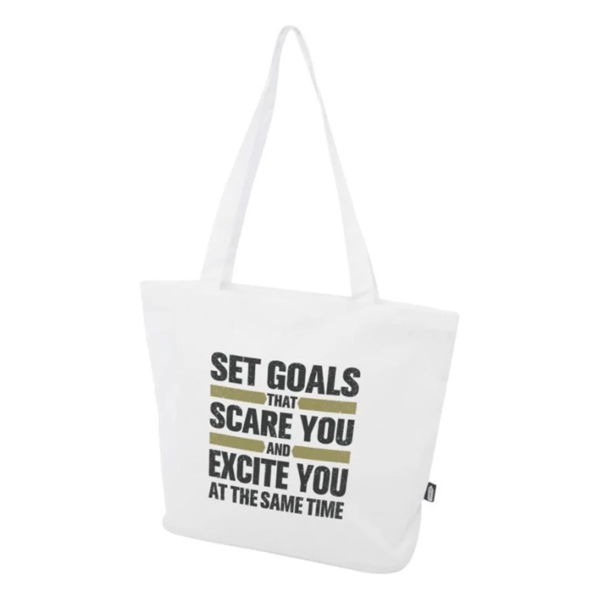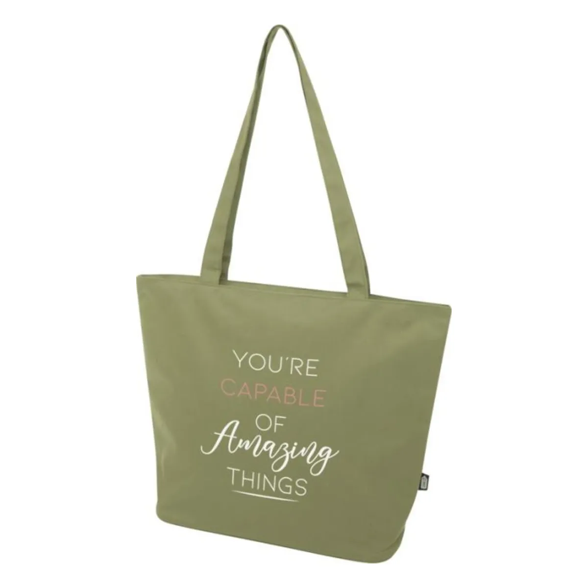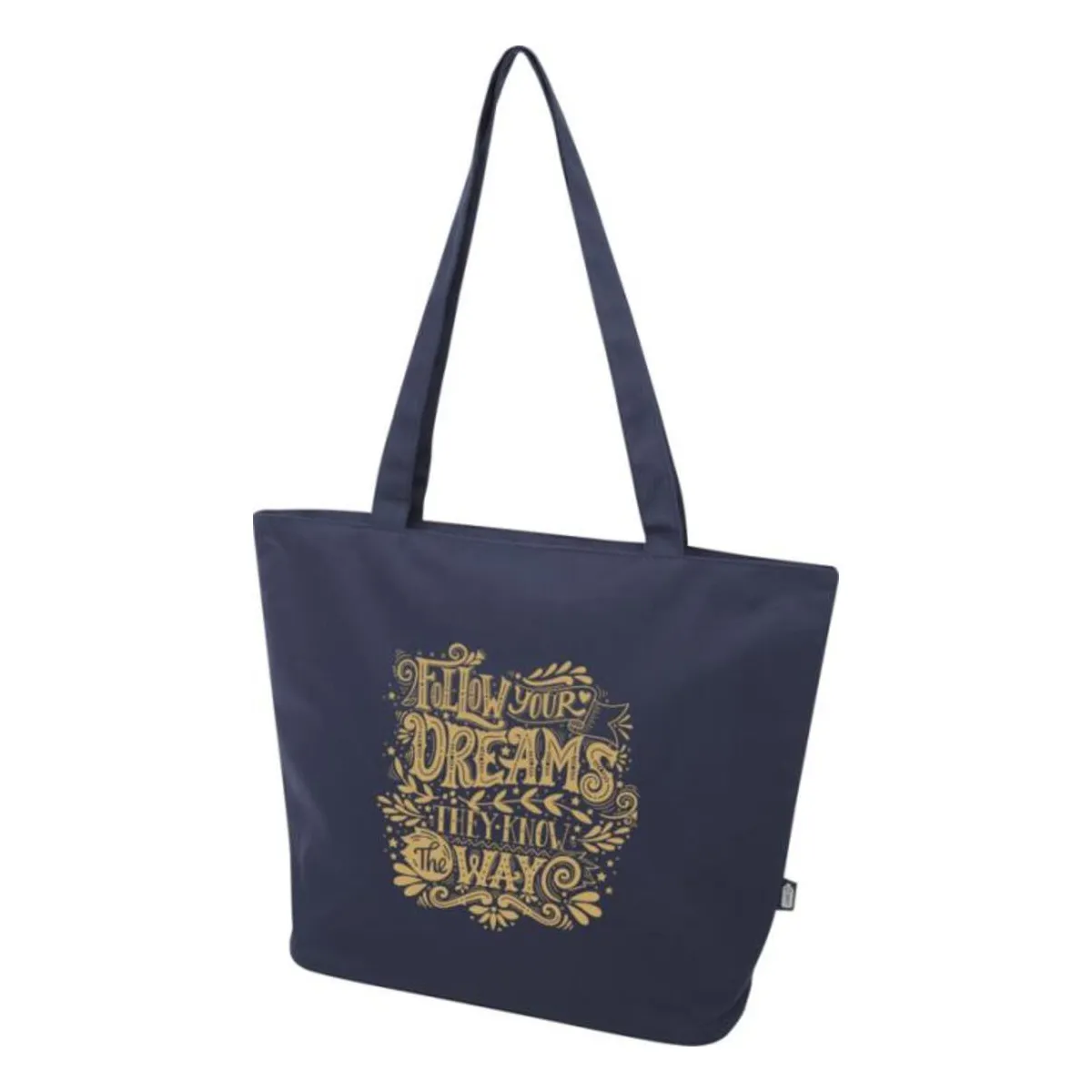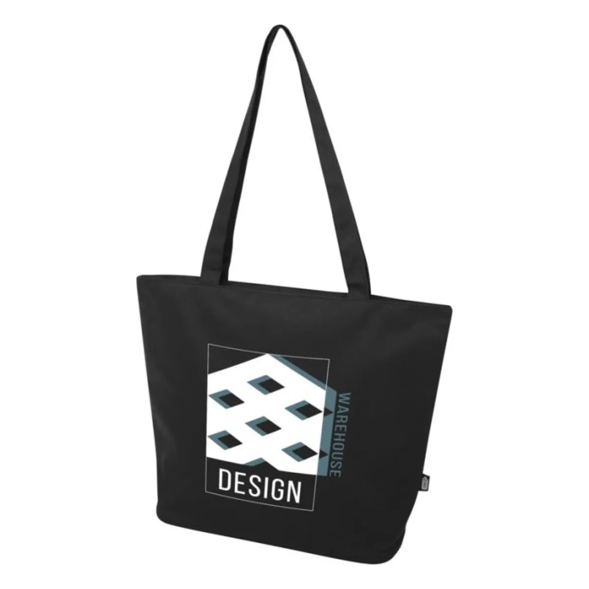 Torba na zakupy zapinana na zamek błyskawiczny z wodoodpornego materiału RPET 600D z recyklingu z certyfikatem GRS.
