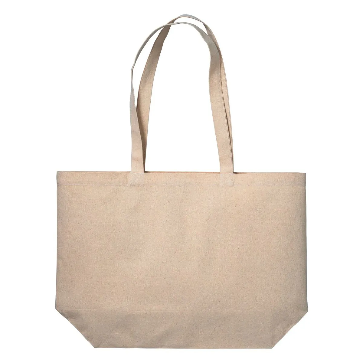 Duża płócienna torba na zakupy z poszerzanym dnem.